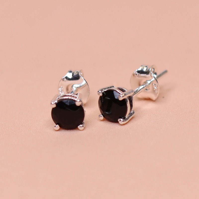 Brinco de Prata Ponto de Luz Coleção Fancy Zircônia Negra 5mm