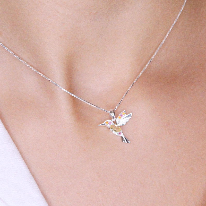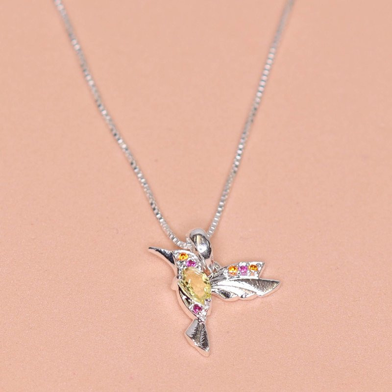 Colar de Prata Beija Flor Coleção Florescer Zircônia Yellow 45cm
