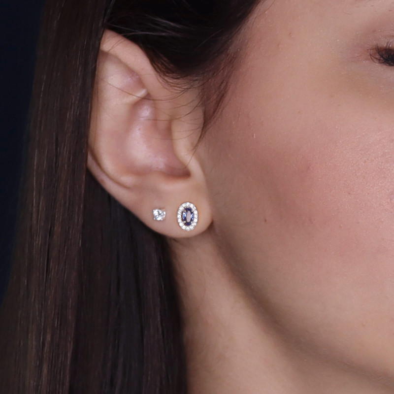 Pedra: Zircônia Oval Tanzanita 5x3 e Zircônias Brancas 1.0mm