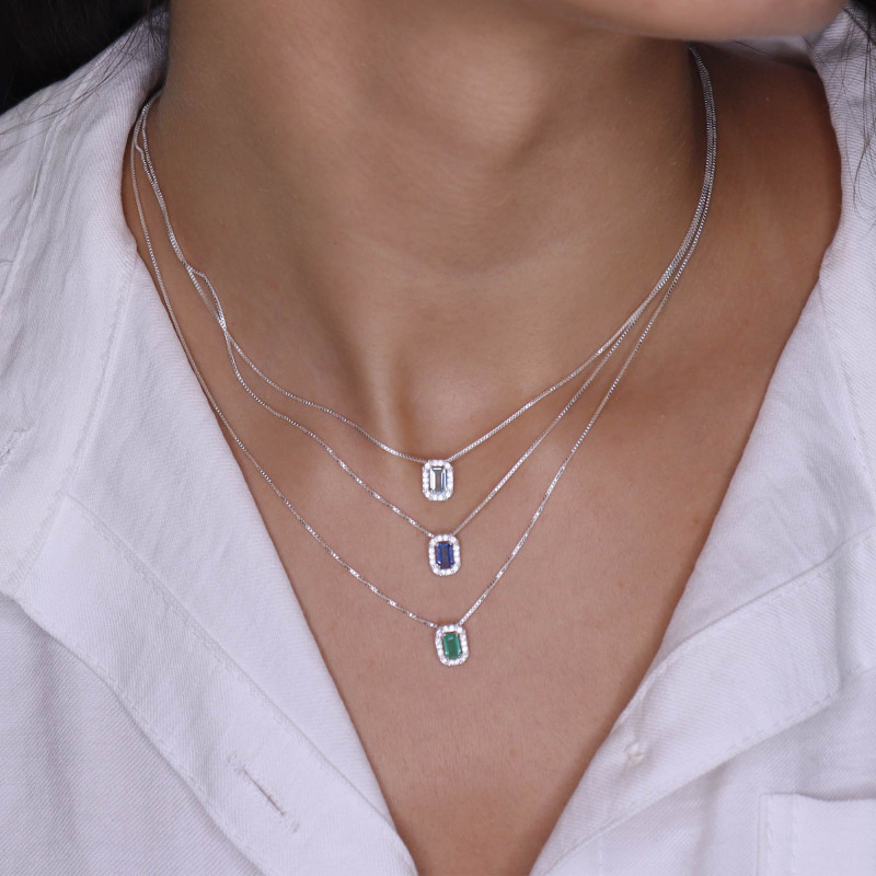 Colar de Prata Coleção Princess Zircônia Esmeralda 45cm