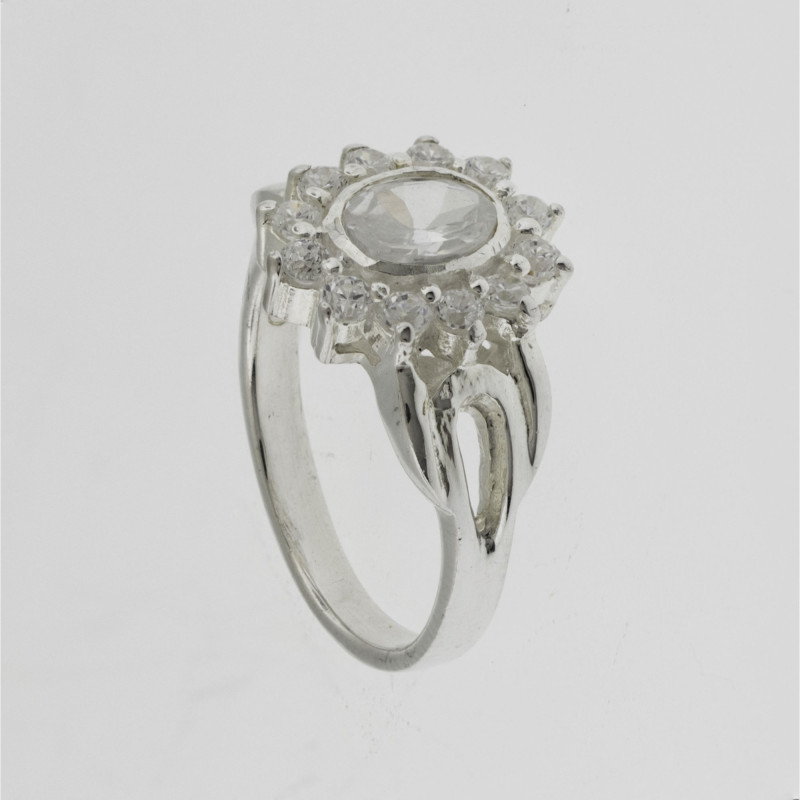 Anel de Prata Oval com Zircônias Cristal 8x5mm