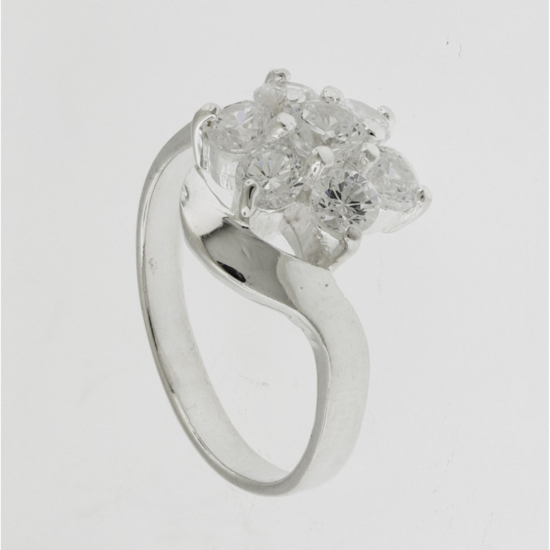 Anel de Prata Flor Espiral Zircônias Cristais 3.0mm