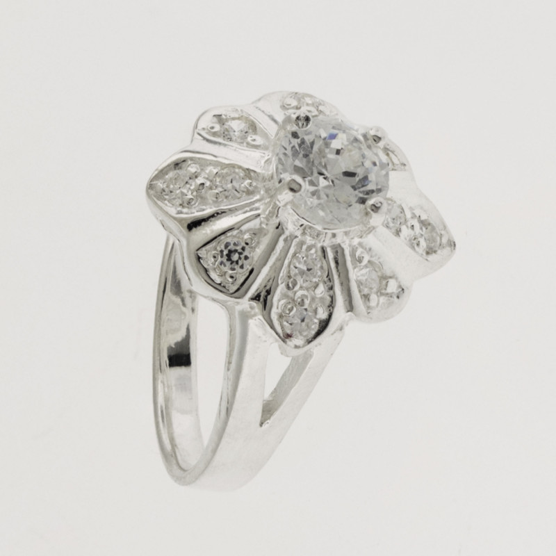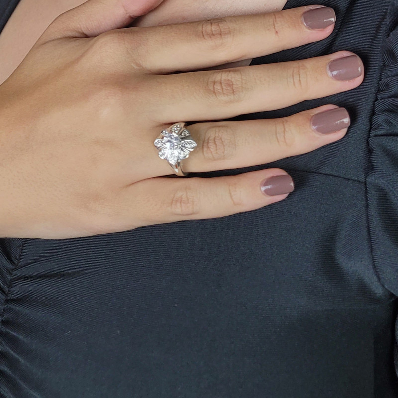 Anel de Prata Flor Celestial Zircônias Brancas 5mm