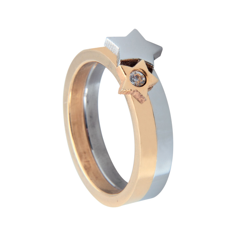 Anel em Aço 02 Aros Separados Estrela IPG com Zircônia