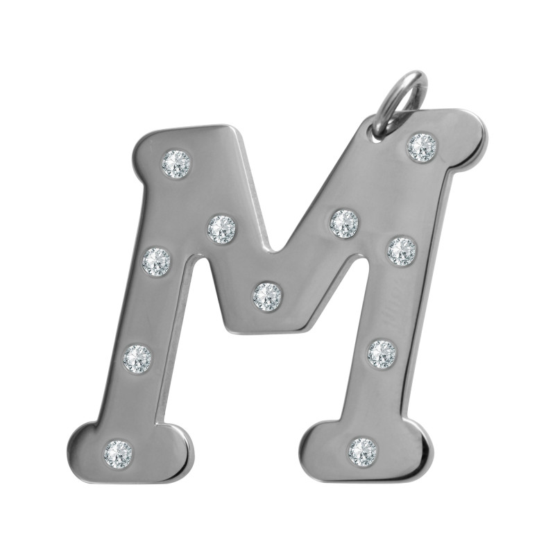 Pingente em Aço Letra M com Zircônia