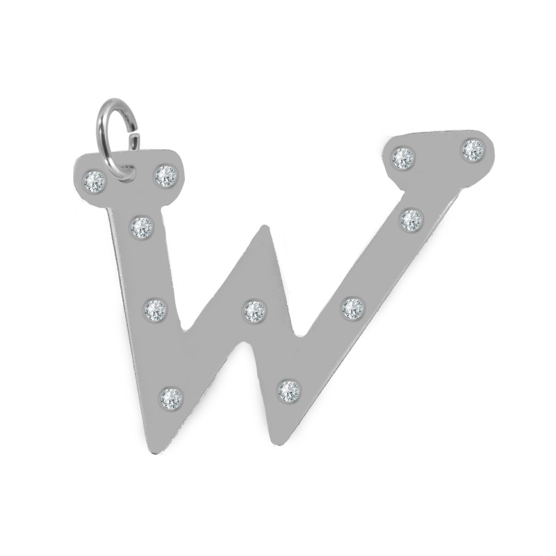 Pingente em Aço Letra W com Zircônia
