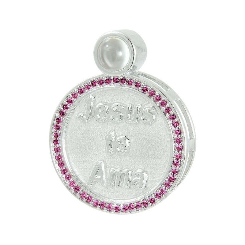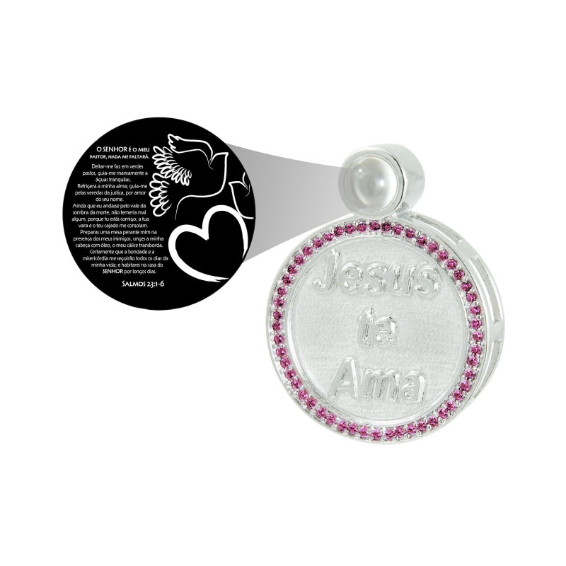 Pingente Prata Neo Crystal Jesus Te Ama com Zircônia
