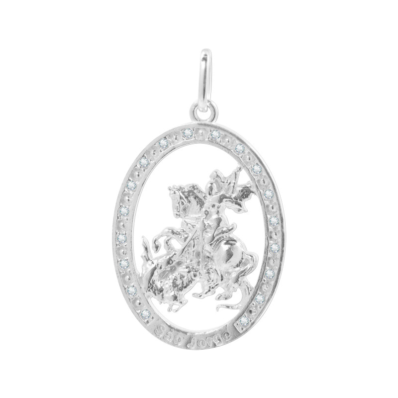 Pingente em Prata São Jorge Cravejado Oval 26x18mm