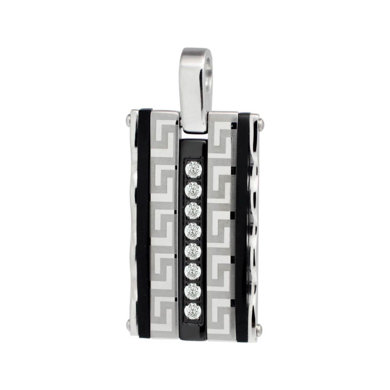 Pingente Aço Retangular Trabalho Grego Resina Preta com Pedra 35x19mm