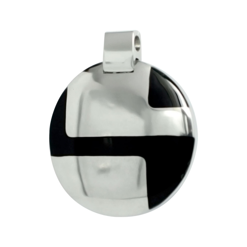 Pingente em Aço Redondo Abstrato com Resina Preta 40x40mm