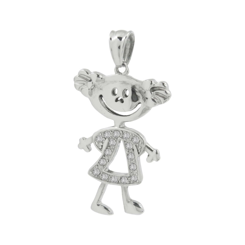 Pingente em Aço Menina Vestido Vazado 34x22mm