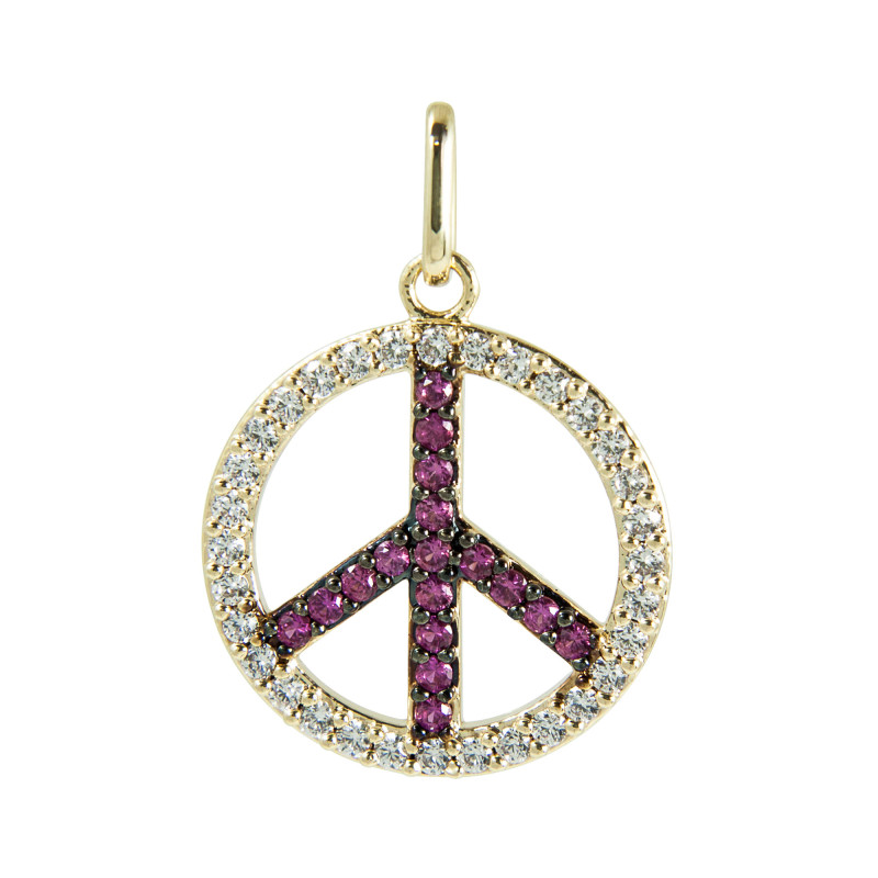 Pingente de Prata Paz e Amor Revestida com Ouro 18k e Zircônias 17mm