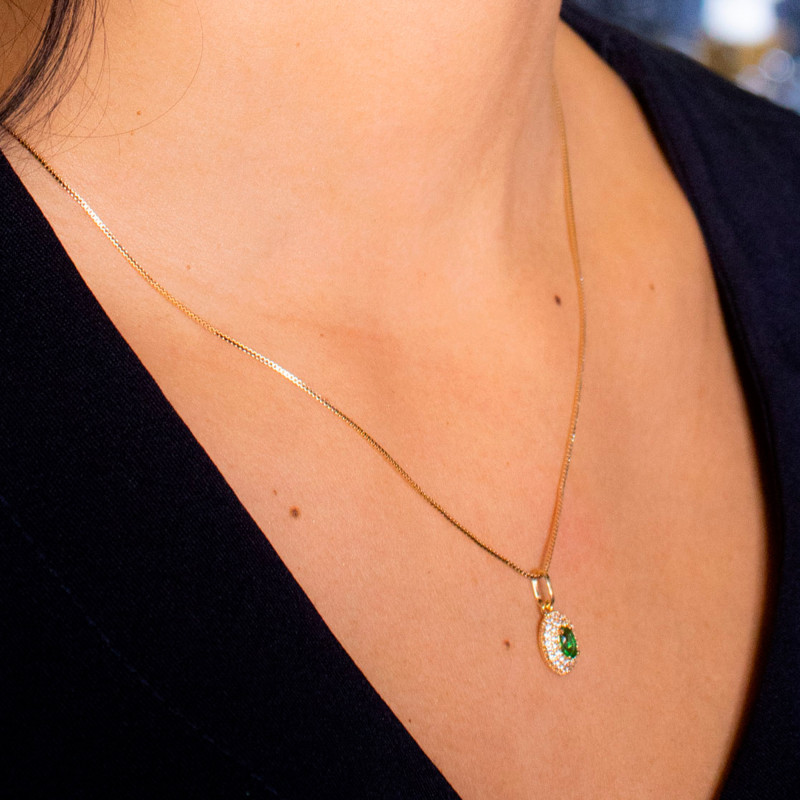 Os pingentes Oval com pedra de zircônia, com lindo detalhe em volta na pedra principal, trazem um ar de sofisticação e delicadeza. Com variedades de cores, você realça sua beleza com brilho intenso de nossas Zircônias.
