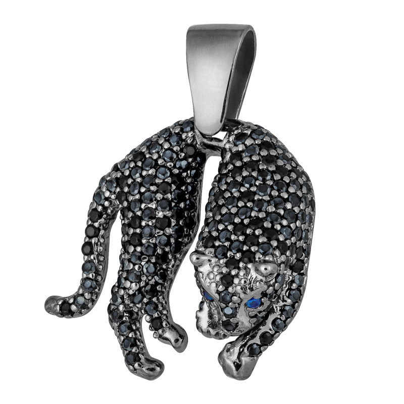Pingente de Prata Pantera Negra Cravejada de Zircônias negras olho azul 00309