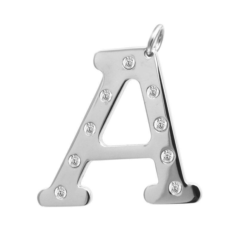 Pingente em Aço Letra A com Zircônia 32x30mm