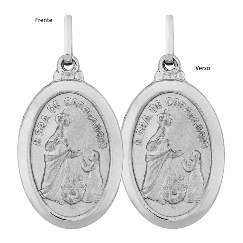 Pingente em Aço NSra. de Caravaggio Oval 23x16mm
