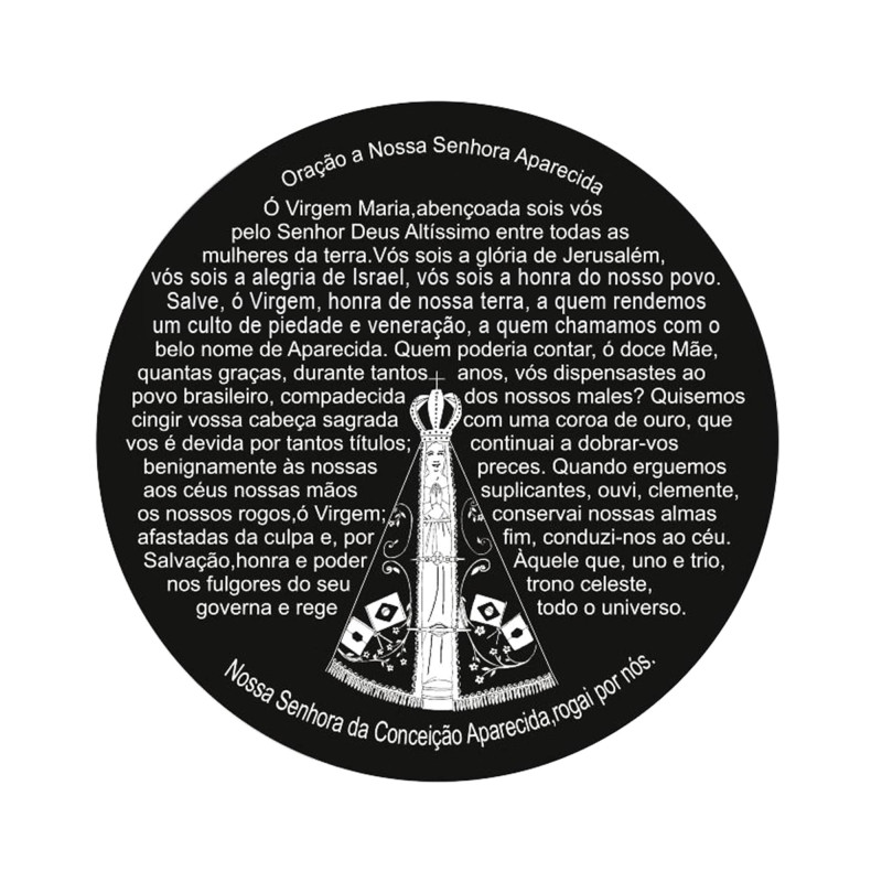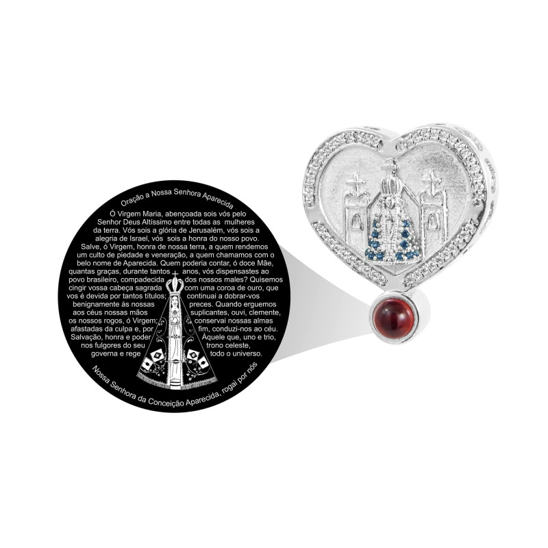 Pingente Prata com Rodio Neo Crystal Coração NSra. Aparecida com Zircônias Brancas/Azuis 28x24mm, com Oração