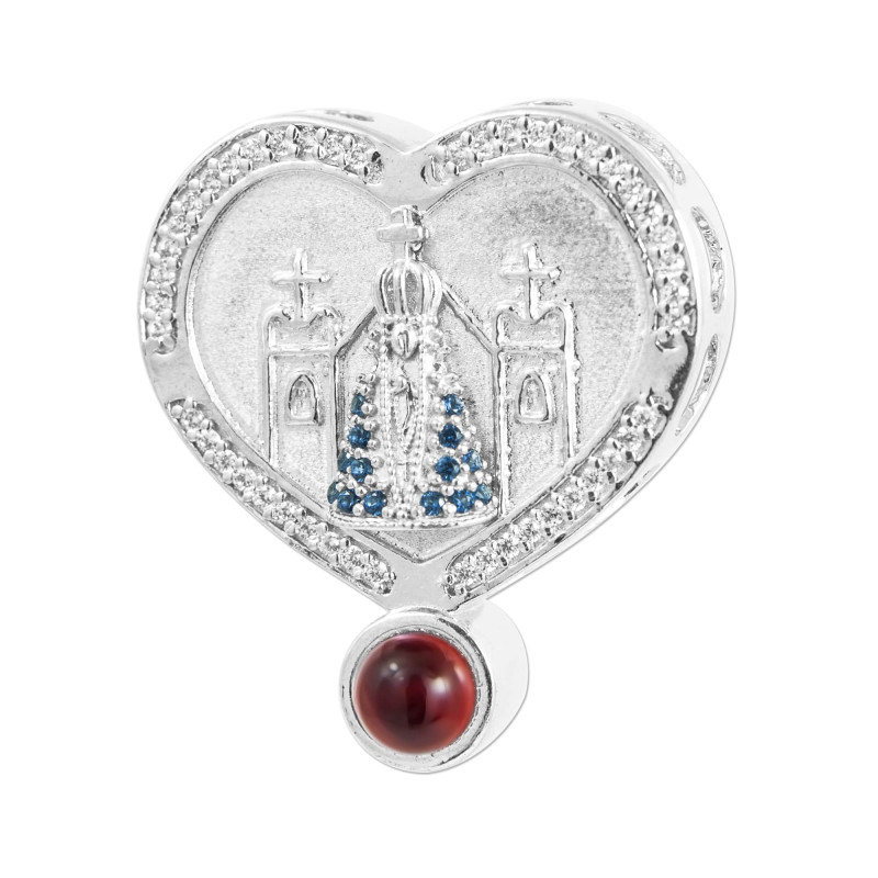 Pingente Prata com Rodio Neo Crystal Coração NSra Aparecida