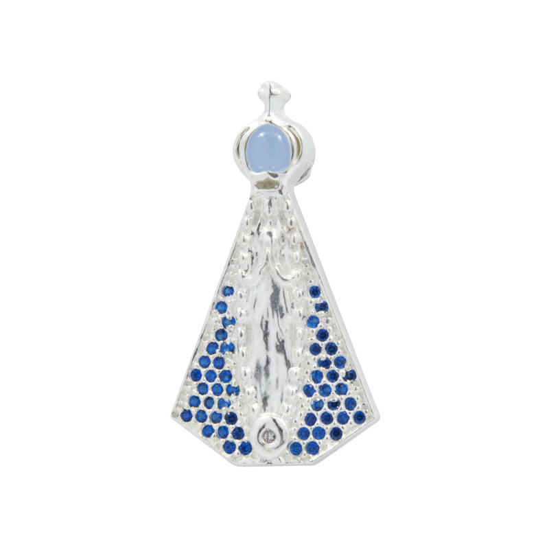 Colar Prata Neo Crystal N. Sra. Aparecida com e Lente Azul 00550