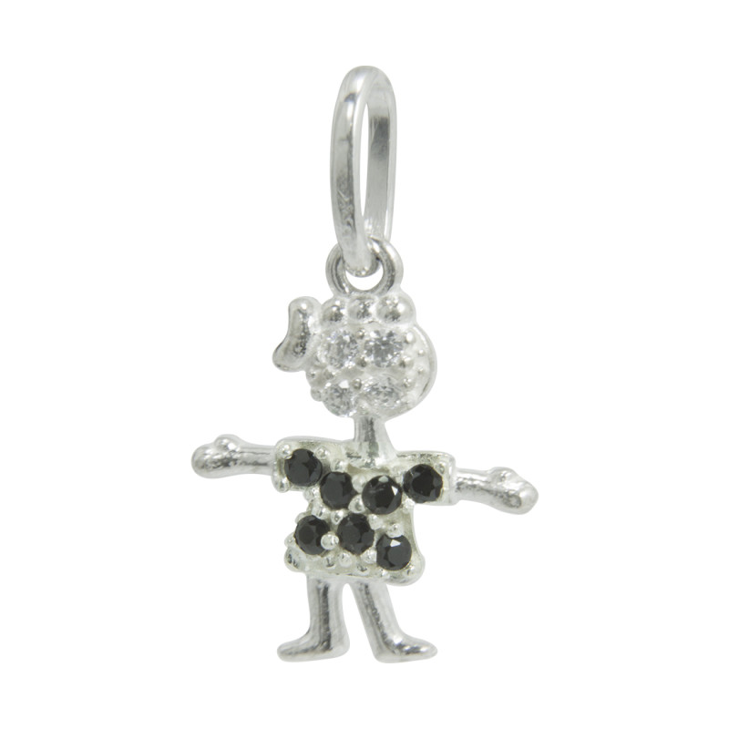 Pingente em Prata Menina com Zircônia Branca e Negra 14x12mm 01166