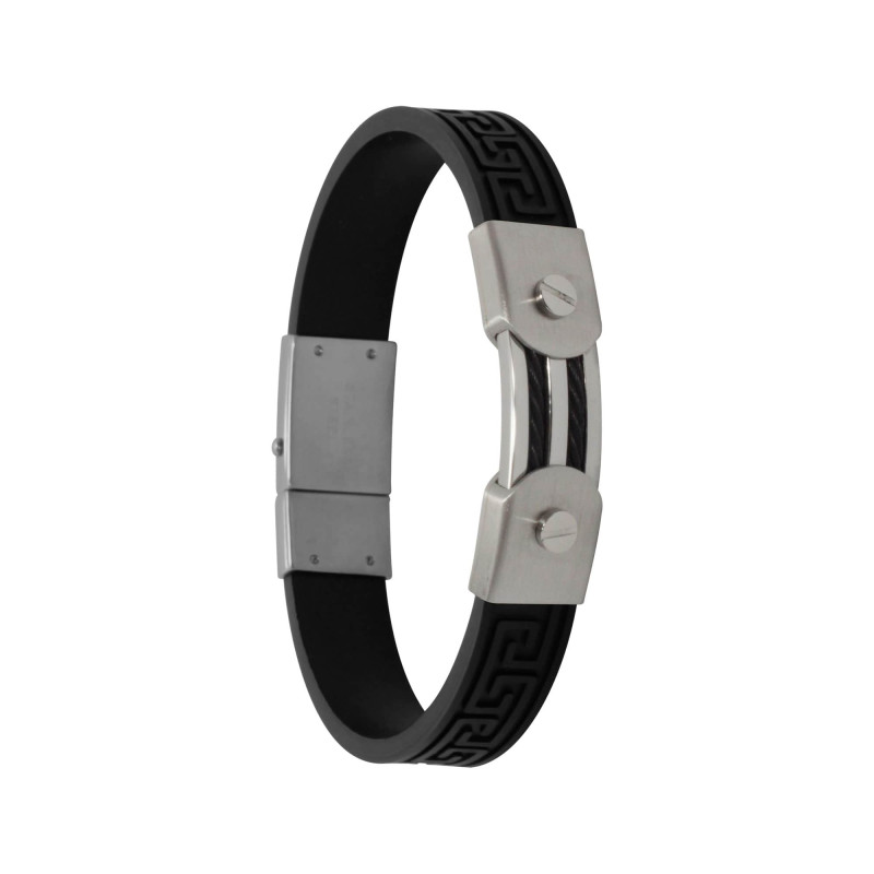 Pulseira em Aço Algema Caucciù com Trabalhado Grego 12mm 21cm