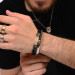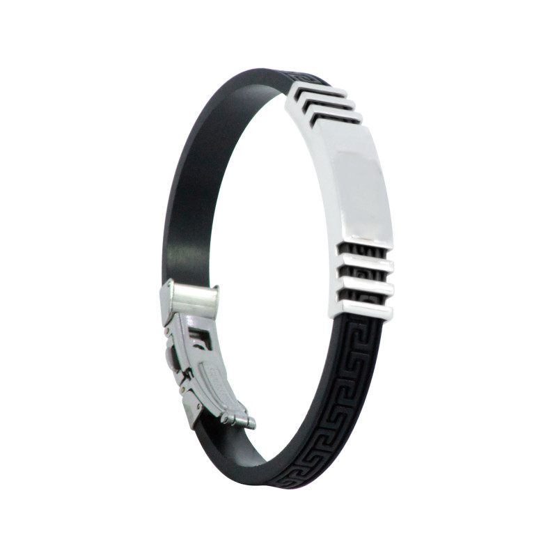 Pulseira em Aço Caucciù com Simbolo Grego e Chapa Vazada 8mm 21cm