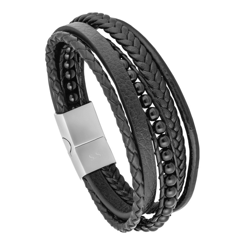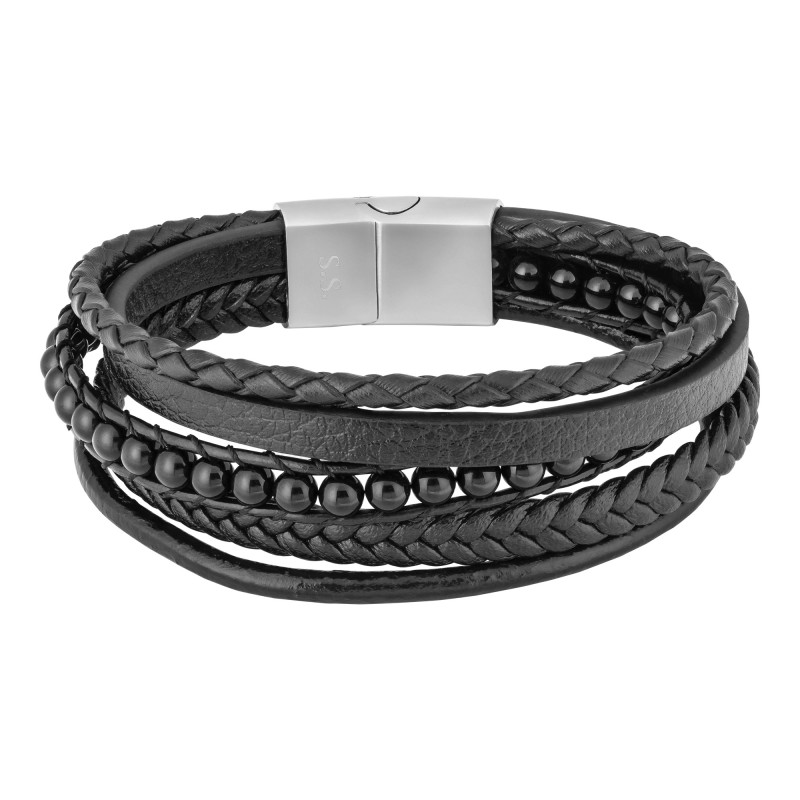 Pulseira Bold Aço com Corino 5 em 1 19cm