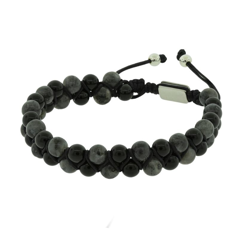Tamanho das Pedras:Labradorita 6mm Ágata Negra 5mm