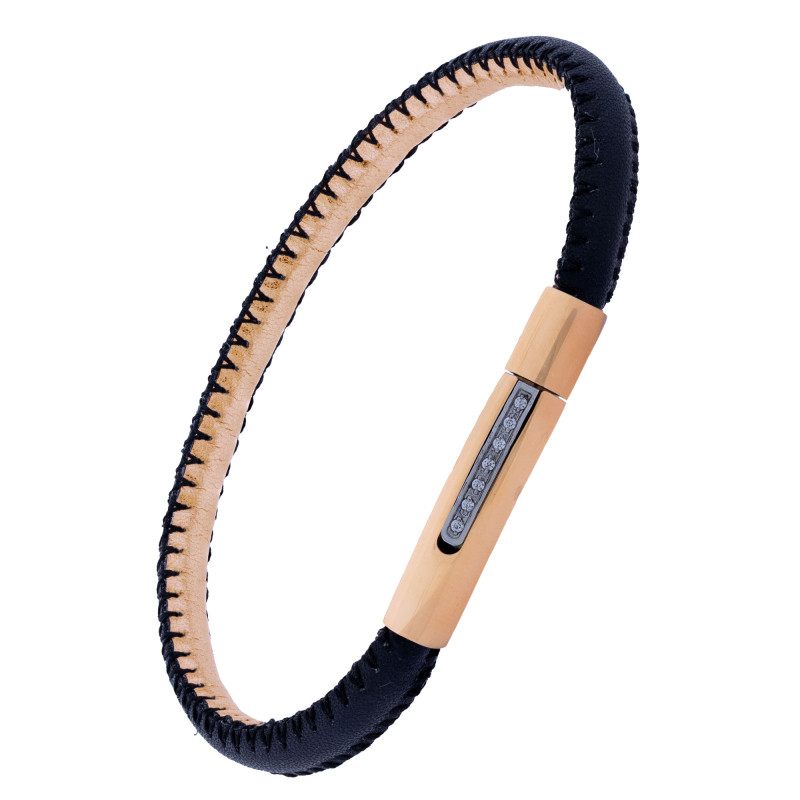 Pulseira em Aço Duo Black e Rose Fecho com Zircônia IPR 5mm 18cm