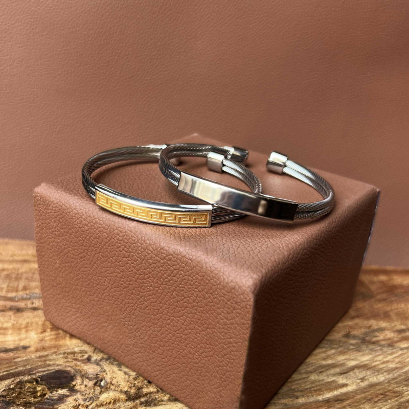 Bracelete de Aço Cabo Náutico Trabalhado Grego IPG 12mm 21cm