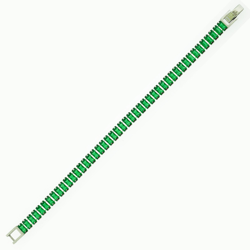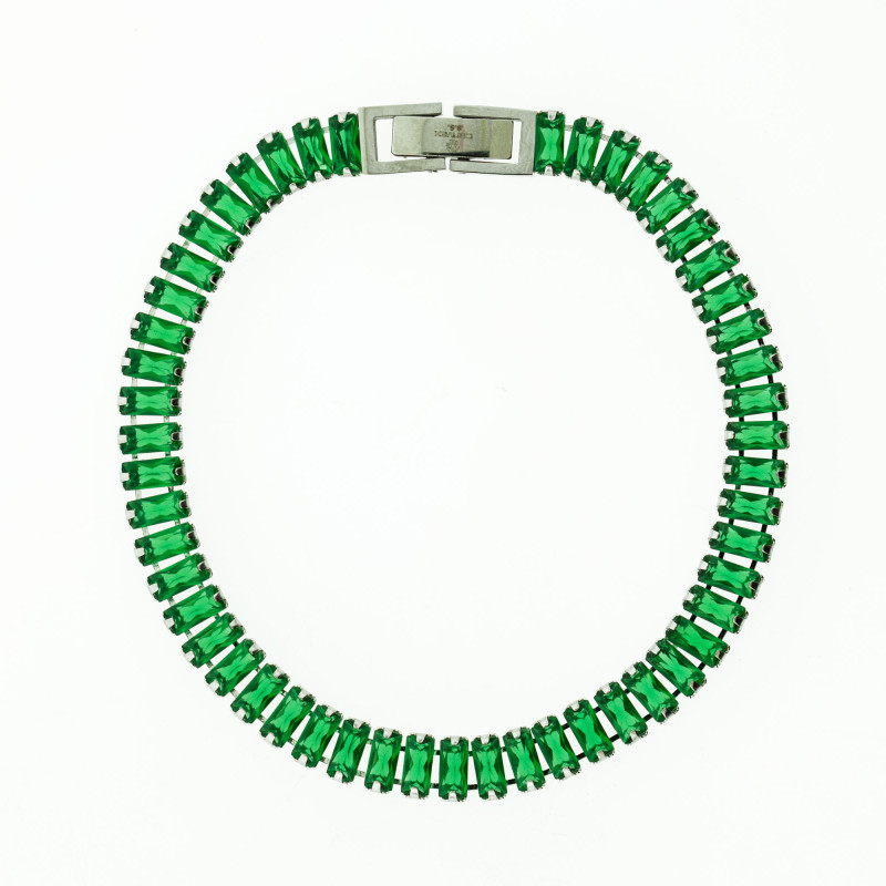 Pulseira de Aço Riviera Zircônia Esmeralda
