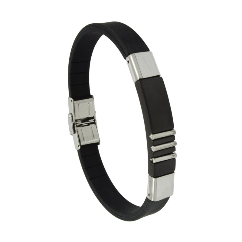 Pulseira em Aço Caucciù com Chapa Abaulada 11mm 21cm