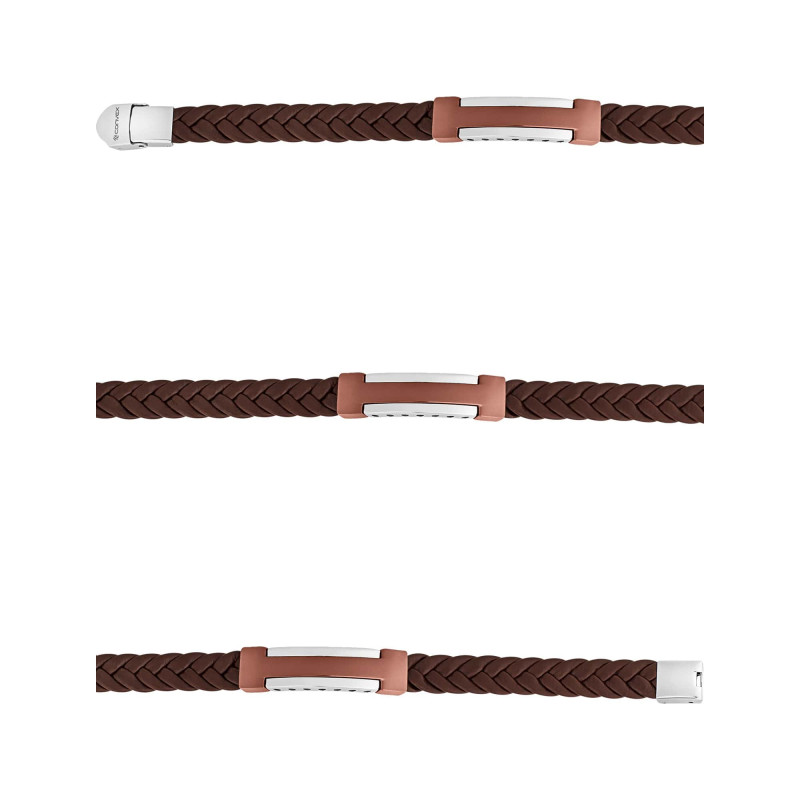 Pulseira em Aço Chapa Abaulada Brown Couro Trançado 12mm 21cm