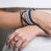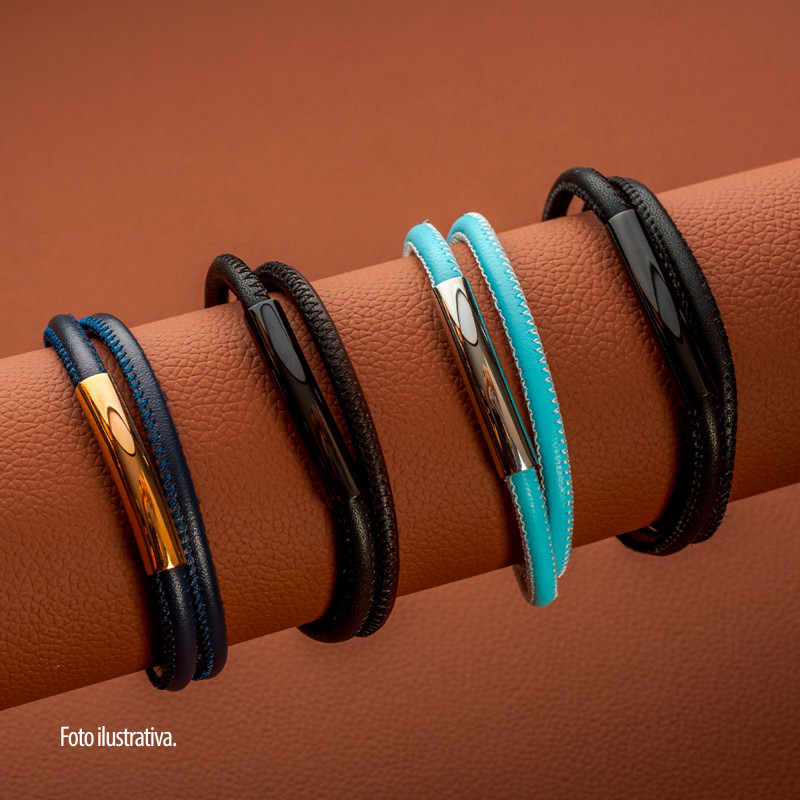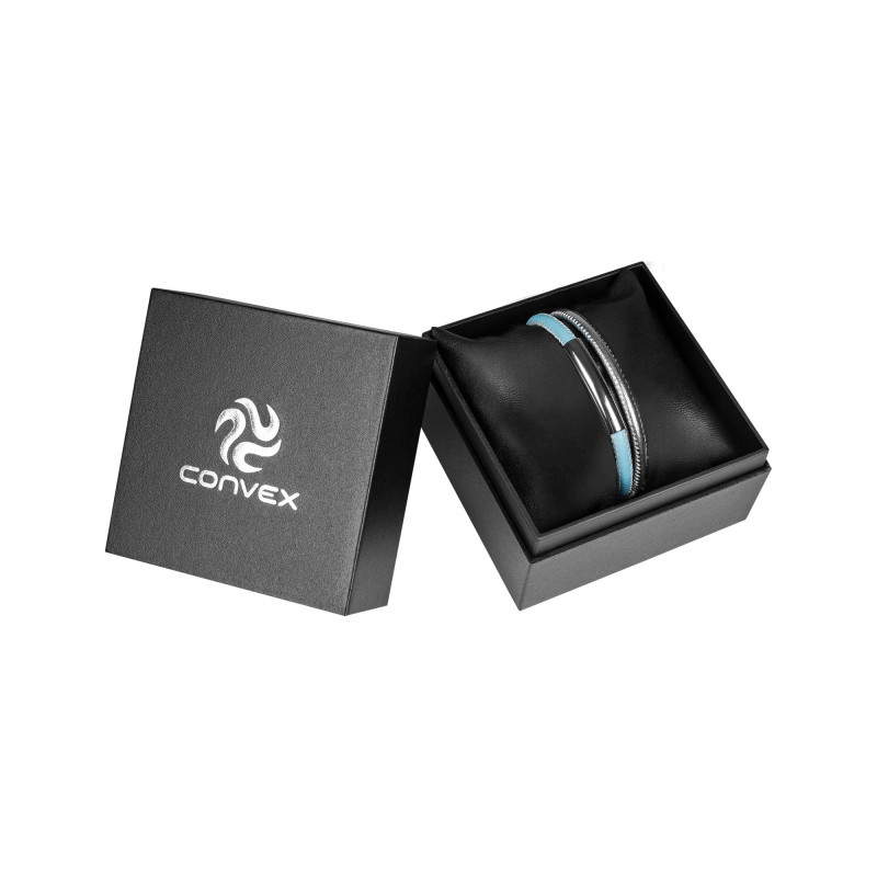 Pulseira Aço Couro Duo Light Blue e Silver 5mm