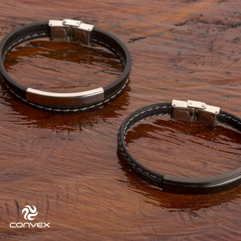 Pulseira Saturno Aço com Corino 6.6mm 21cm