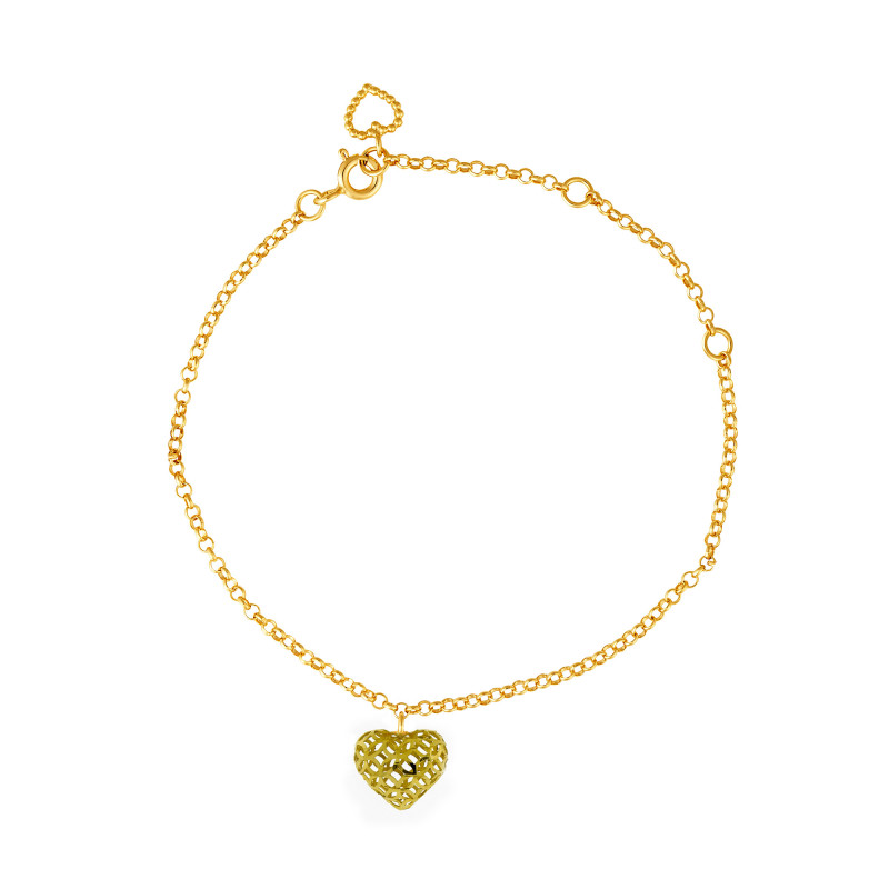 Pulseira de Prata Coração Filigrana Revestida com Ouro 18k 00150