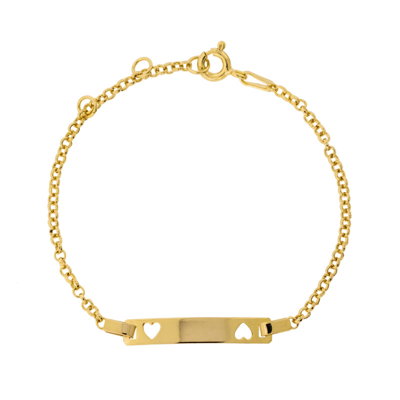 Pulseira de Prata Infantil Chapa coração Duplo Revestida com Ouro 18k 14cm