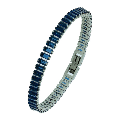 Pulseira de Aço Riviera Safira Zircônia Baguete 18cm IPG (2700866-)