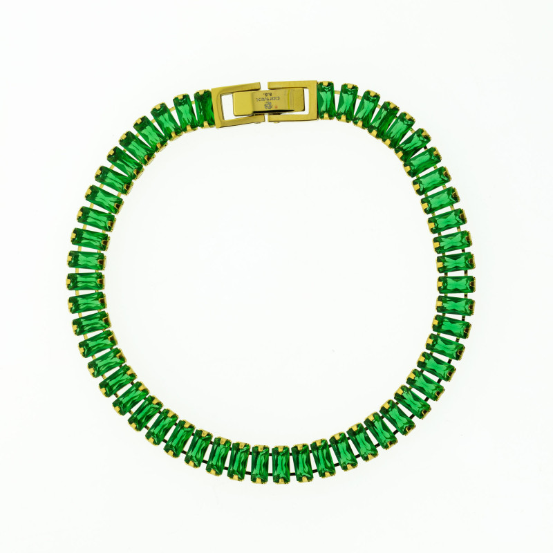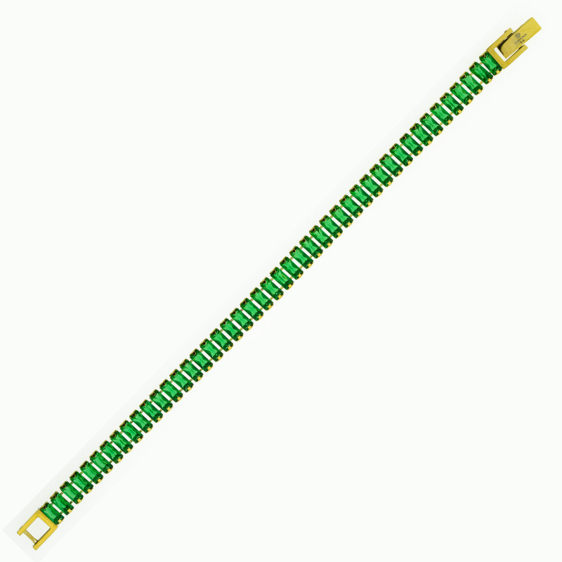Pulseira de Aço Riviera Esmeralda Zircônia Baguete 16cm IPG