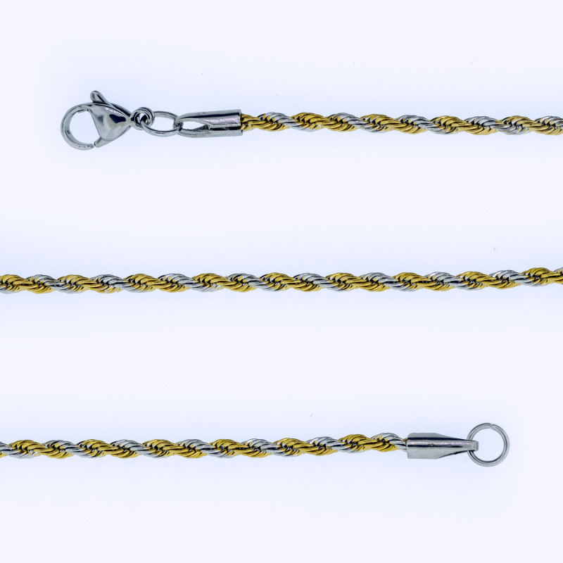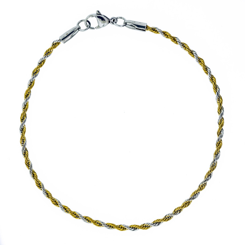 Tornozeleira de Aço Corda Trançada Prateada e Dourada 22cm