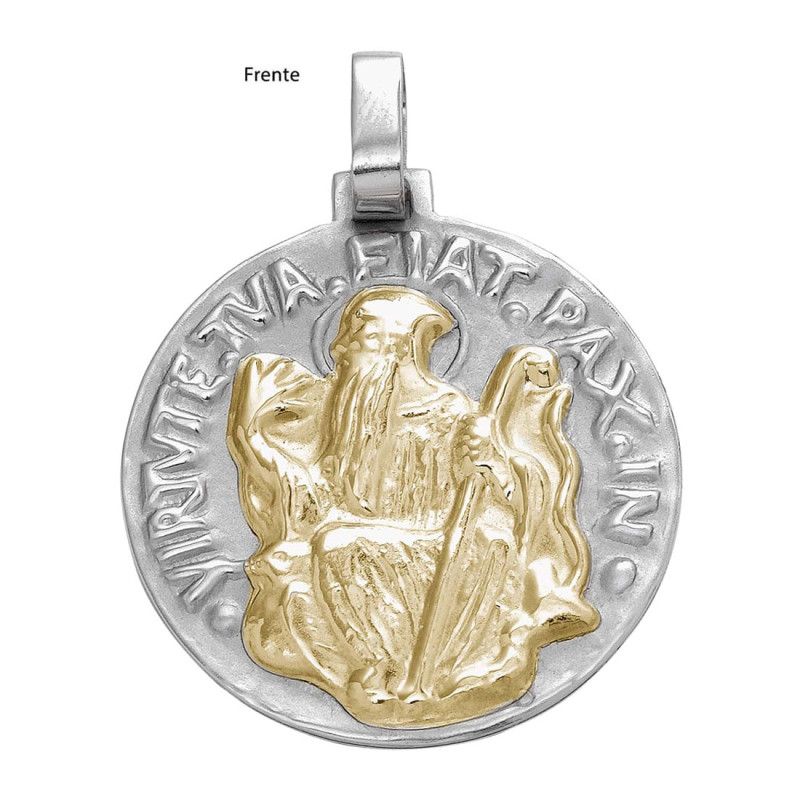 Pingente em Aço São Bento Redondo 27mm com Ouro