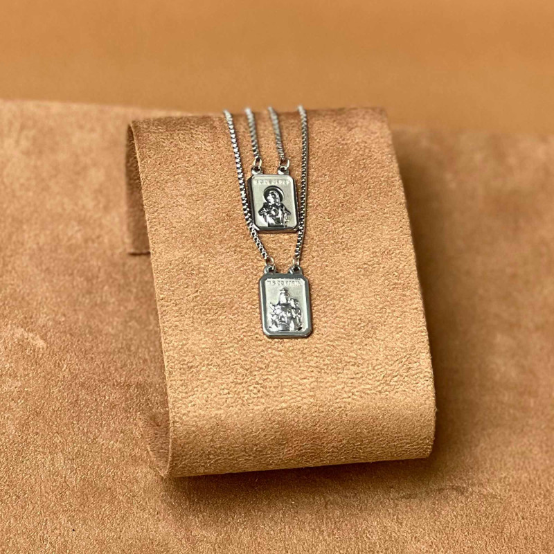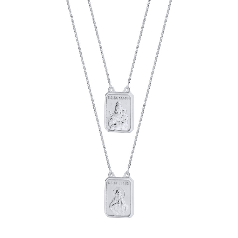 Escapulário de Aço Nsra Do Carmo e Sagrado Coração de Jesus