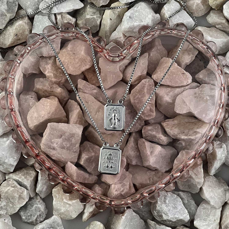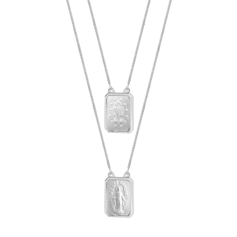 Escapulário de Aço Nossa Sra Das Graças 14x11 65cm com Corrente Veneziana