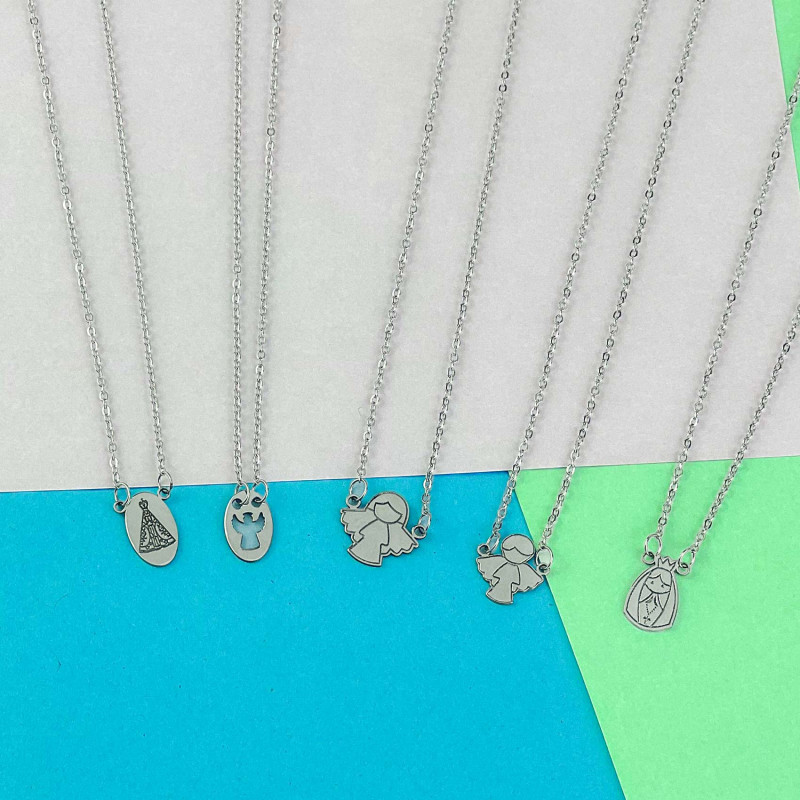 Um presente lindo e significativo de nascimento e batismo, o escapulário de Aço não oxida e é hipoalergênico.