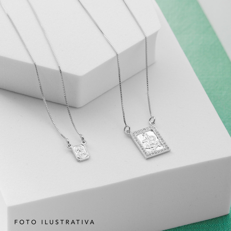 Escapulário Prata Veneziana Dupla Face 8.4x6.5mm 60cm
