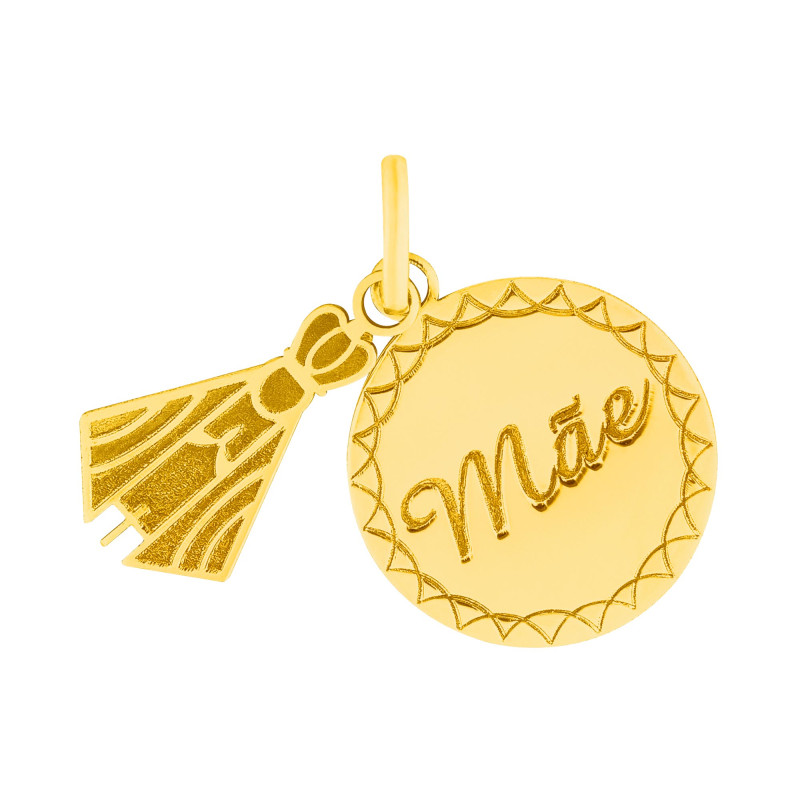 Formato dos Pingentes: redondo com a imagem de Nsra e escrita: Mãe