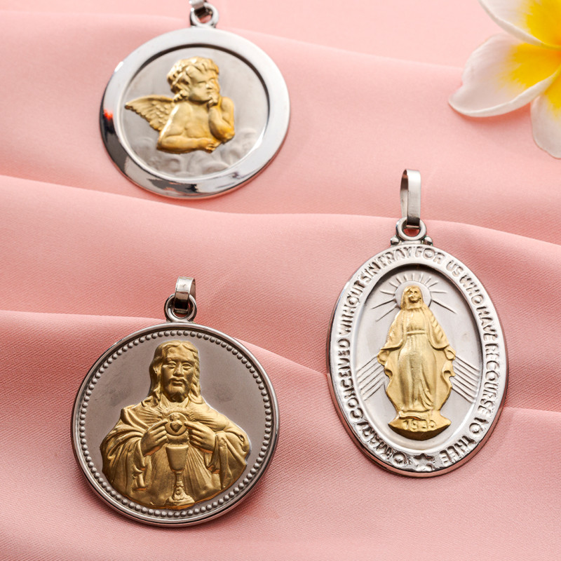 Pingente em Aço Anjo Pensador Redondo 50mm com Ouro