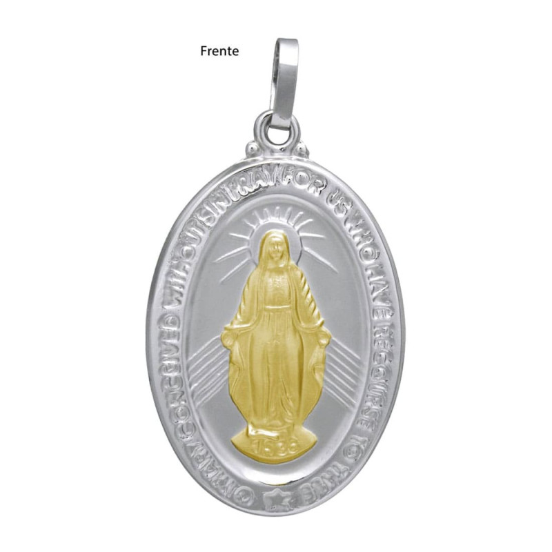 Pingente em Aço Milagrosa Oval 70x44mm com Ouro