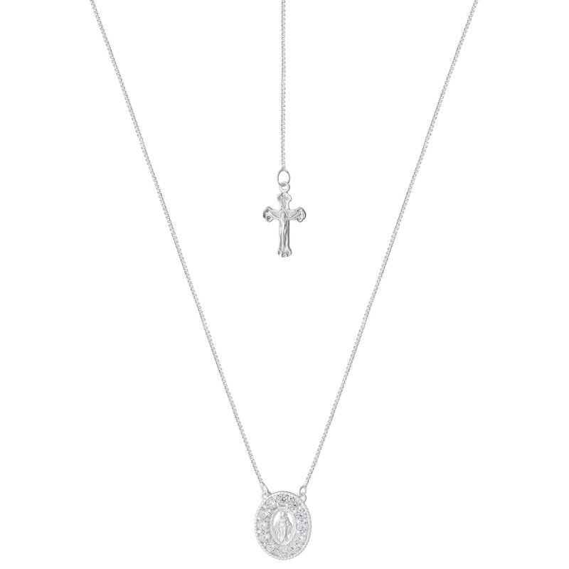 Colar de Prata NSra. das Graças com Zircônias Brancas 15x12mm