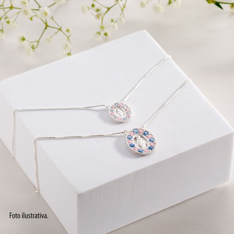Colar Prata Veneziana N. Sra. das Graças com Zircônias Azuis e Lilás 00270